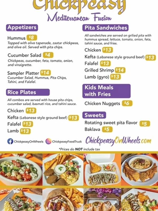 Paul and Jasmine Arroyo creates Chickpeasy with a passion of making people happy through great cuisine and personal connection. Our dishes were inspired by classic mediterranean food with a twist and culinary creativity.
